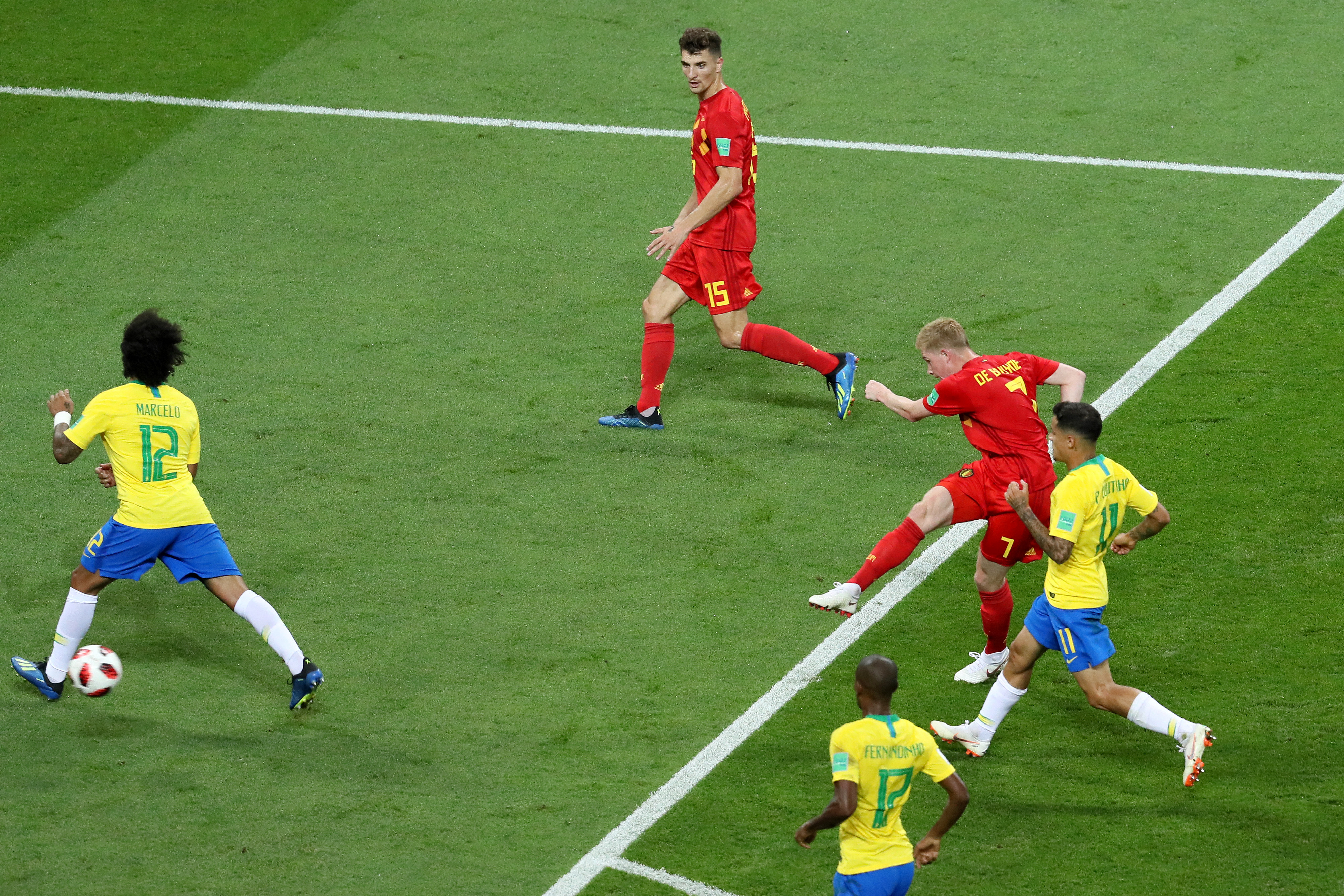 Bilo je reči pre početka turnira koliko je Brazil defanzivno snažan i kako je stvari posložio Tite. Onda se povredio Dani Alves, a potom i Danilo, pa je desnog beka morao da igra Fagner. Uz to, ni Kazemira nije bilo na sredini da pomogne u brzim tranzicijama Belgije. Na kraju je to dovelo do toga da Brazil u prvom poluvremenu deluje potpuno razbijeno.