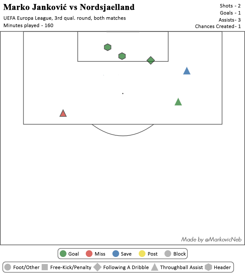 Grafika iznad odlično pokazuje koliko je ključan igrač Janković bio u toj prethodnoj rundi. Dva njegova centaršuta završila su kao asistencije za gol u pet metara protivnika. Ipak, Bešiktaš je nešto sasvim drugo.