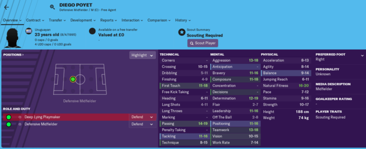 Čuveni Dijego Pojet! Ako već od ranije igrate menadžera, onda sigurno znate za sina Gusa Pojeta, koji je na nekim prethodnim verzijama igrice bio verovatno i najbolji ‚‚free agent”. I ovoga puta je bez kluba, nakon sezone na Kipru, a neki manji evropski timovi bi od njega mogli da dobiju baš mnogo.