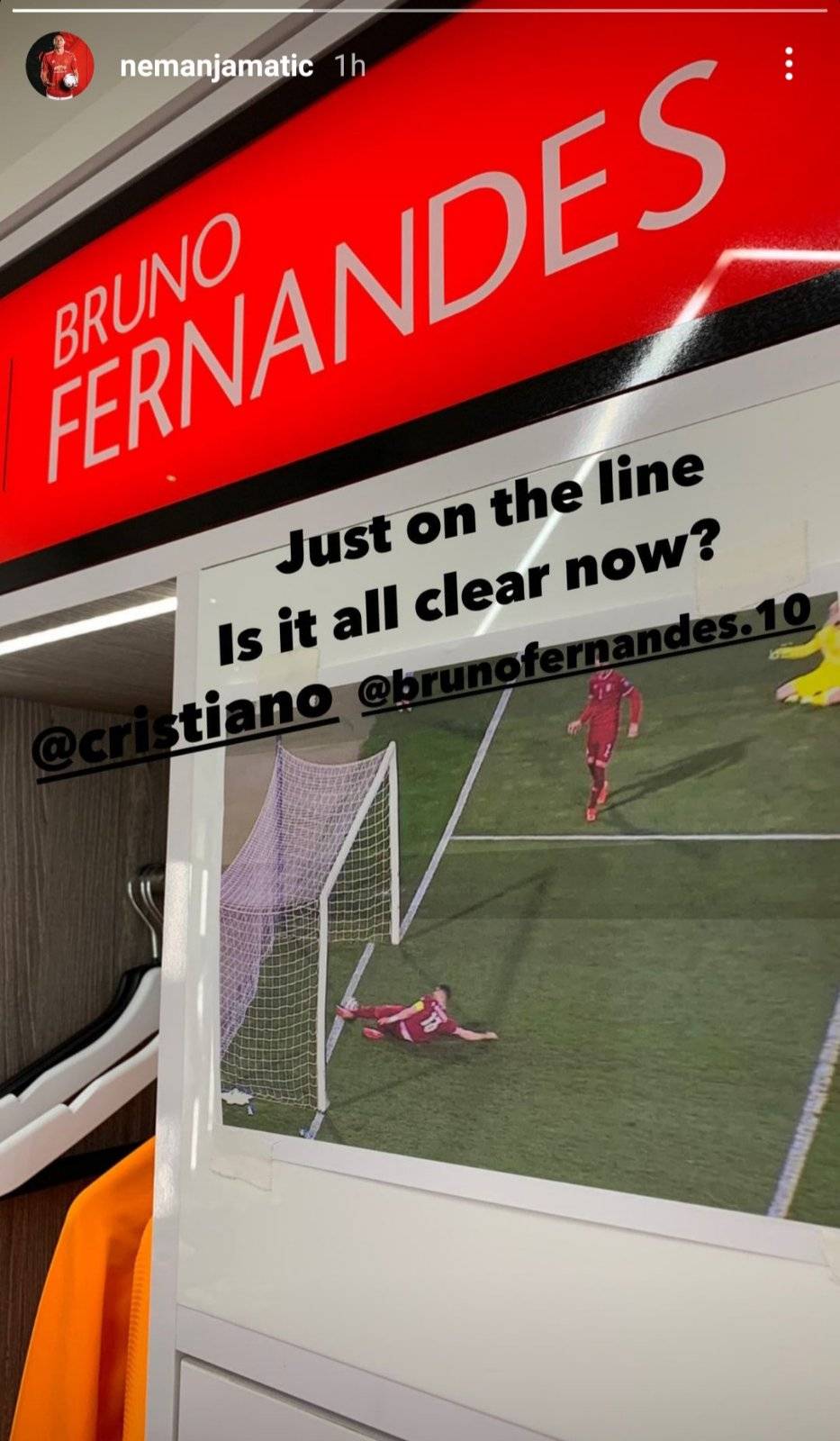 “Taman na liniji. Da li je sad sve čisto?”, okačio je Matić fotografiju na Instagram i u svoj stori spomenuo i Ronalda i Fernandeša. Odgovor teško da će dobiti.