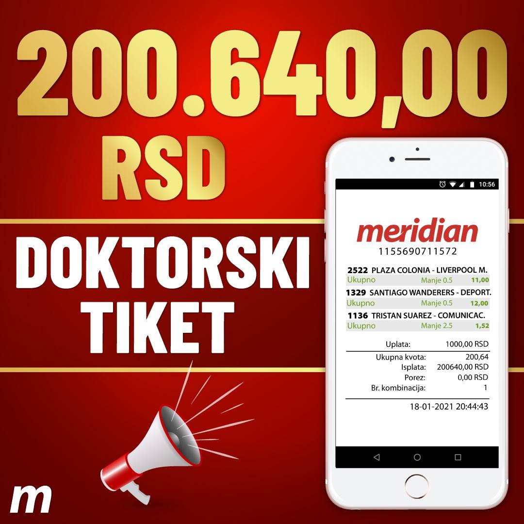 Bravo za doktora latino fudbala. U Meridianu su najveće kvote pa će ovakvih top tiket priča biti još više!