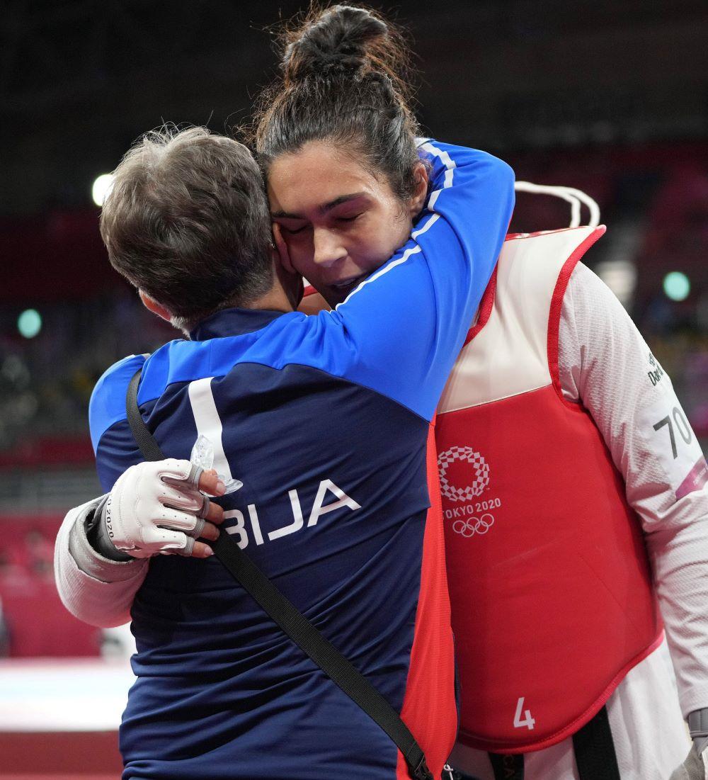 Nakon pobede u polufinalu i prvobitne radosti, pozdrava sa trenerom Draganom Jovićem usledio je dubok naklon publici, u kojoj je bilo podrške za Mandić!