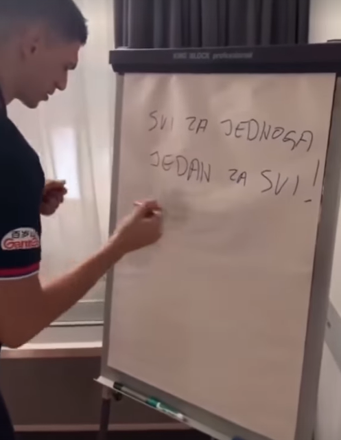 “Svi za jednoga, jedan za svi”, napisao je Podraščanin na tabli kao motivacionu poruku.
